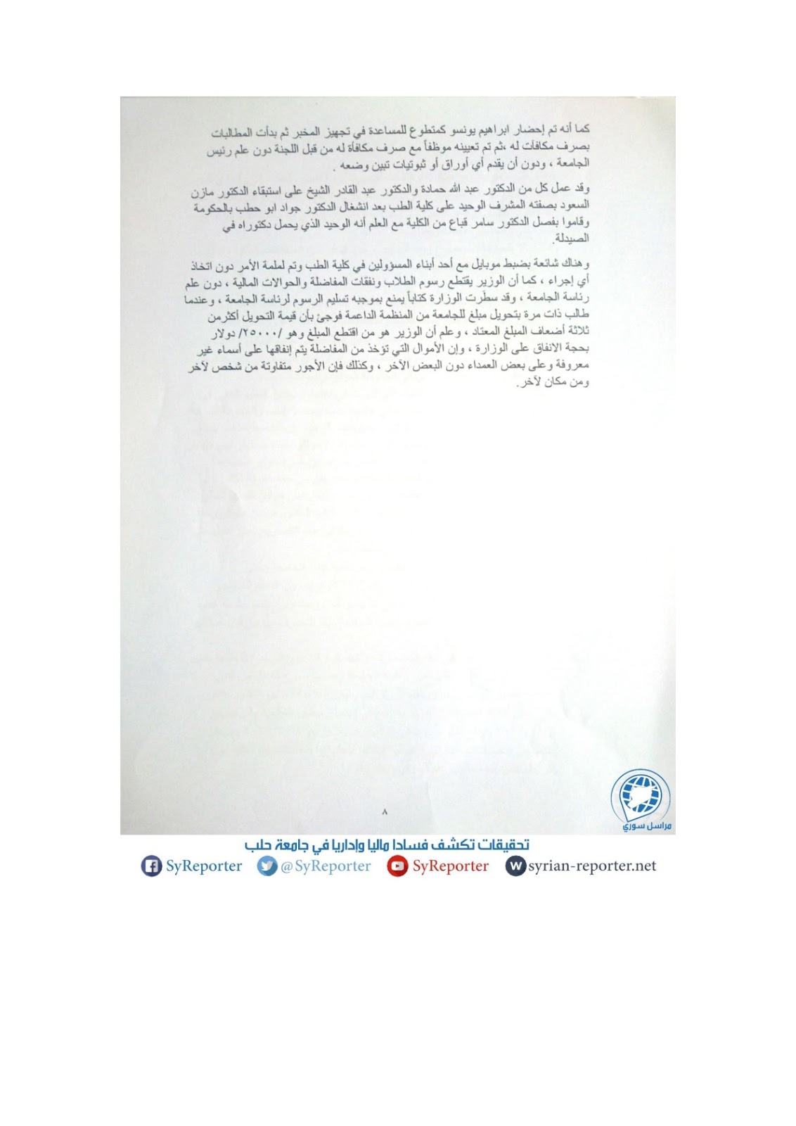 - فساد وسرقات في جامعة حلب وابو حطب يقبض عدة رواتب " بالوثائق "